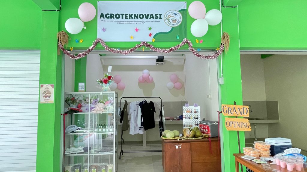 Program Studi Agroteknologi Universitas Sebelas Maret (UNS) resmi meluncurkan toko kreatif bertajuk “AGROTEKNOVASI” pada Rabu, 24 September 2025. Bertempat di area kantin Fakultas Pertanian UNS, toko ini menjadi wadah inovasi sekaligus sarana pemasaran produk-produk unggulan mahasiswa dan sivitas akademika Prodi Agroteknologi.